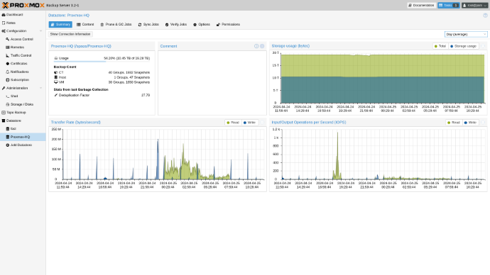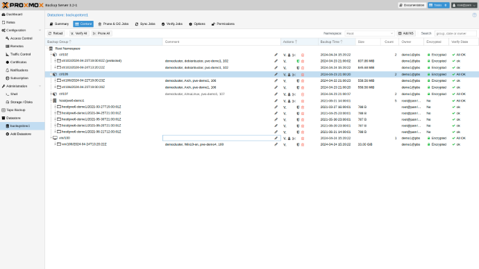„Proxmox Backup Server“ yra su integruota grafine vartotojo sąsaja (GUI), skirta serveriui valdyti. Tai reiškia, kad visas administravimo užduotis galite atlikti naudodami savo interneto naršyklę (per https://jusuipadresas:8007 ). Žiniatinklio sąsajoje taip pat yra integruota konsolė, taigi, jei jums labiau patinka komandų eilutė arba reikia papildomo valdymo, turite daug parinkčių.